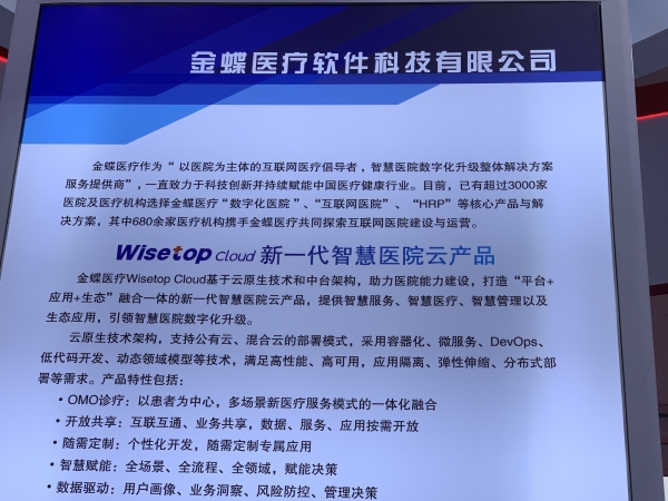 金蝶医疗作为“以医院为主体的互联网医疗倡导者,智慧医院数字化升级整体解决方案服务提供商”,一直致力于科技创新并持续赋能中国医疗健康行业。目前,已有超过3000家医院及医疗机构选择金蝶医疗“数字化医院”、“互联网医院”、“HRP”等核心产品与解决方案,其中680余家医疗机构携手金蝶医疗共同探索互联网医院建设与运营。